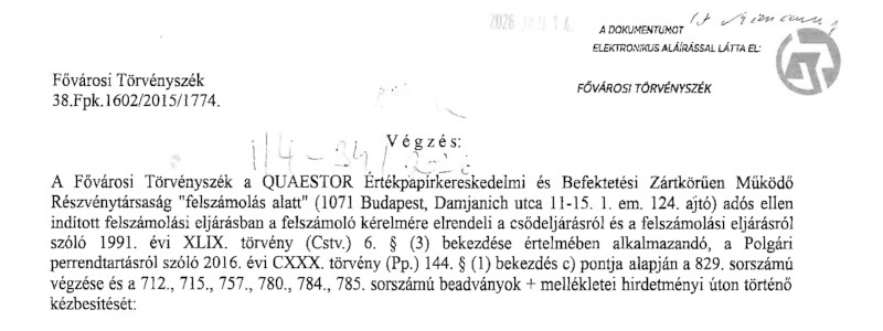 a Fővárosi Törvényszék hirdetményei (QUAESTOR)