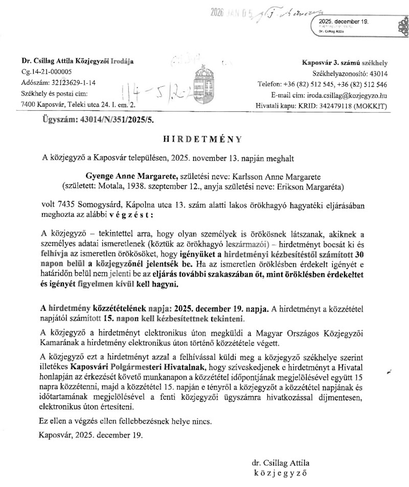 Kaposvár, 2026.01.07 12:24