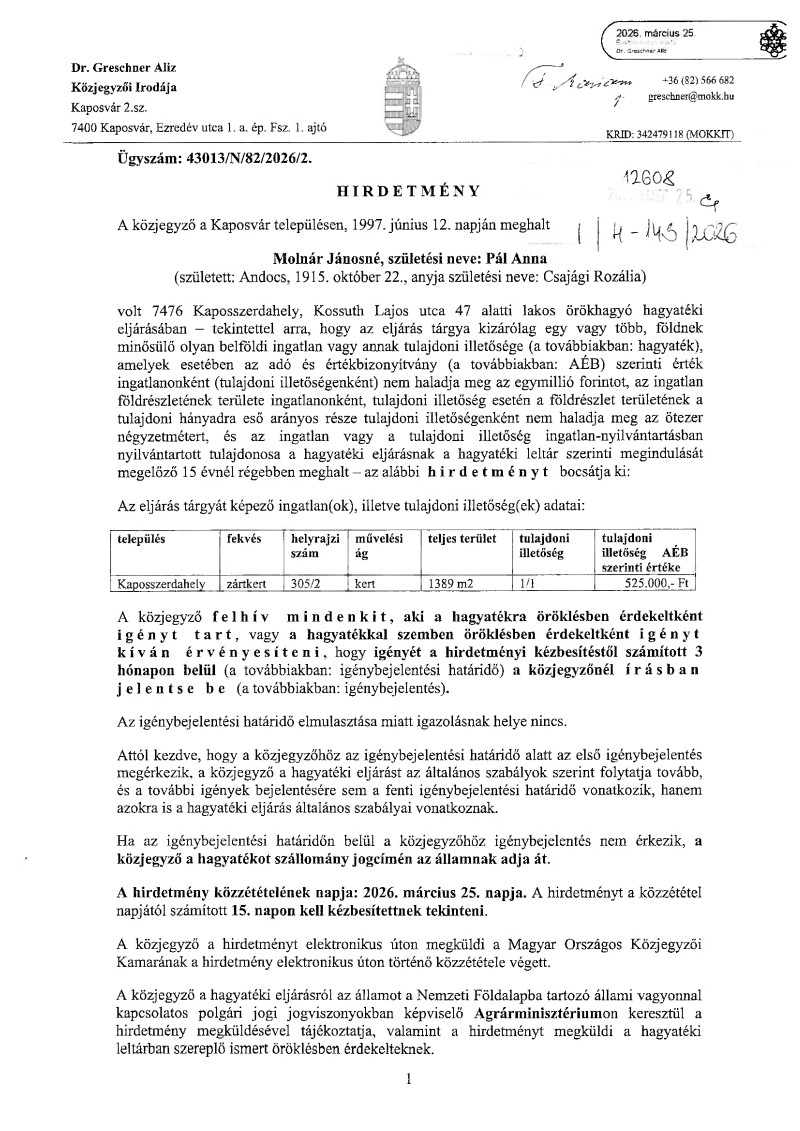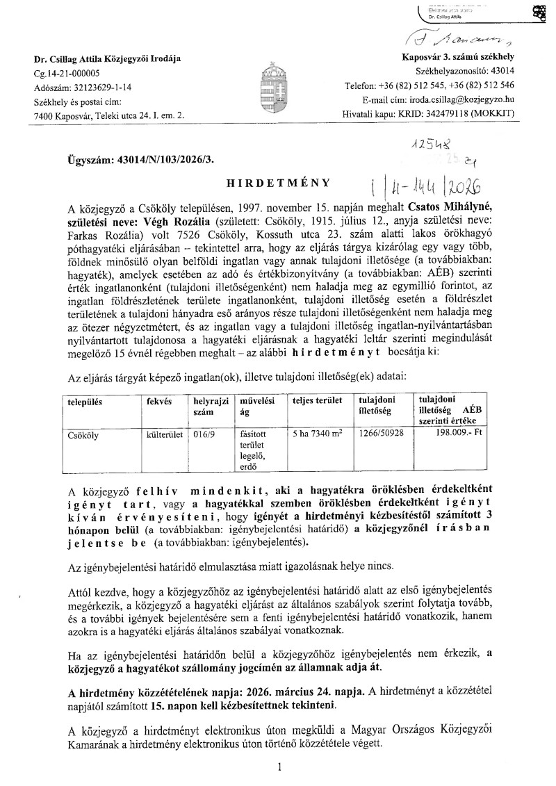 I. Hirdetmények